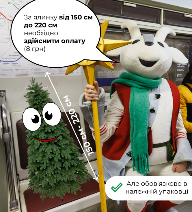 Проїзд у метро з ялинкою до 220 см коштуватиме додаткових 8 гривень (ілюстрація: facebook.com/kyivmetro)