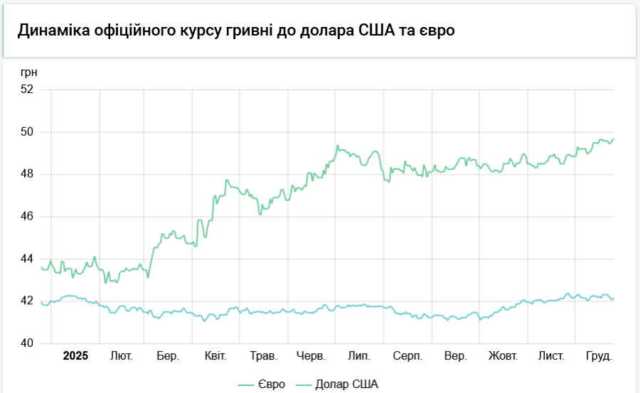 Офіційний курс долара на 26 грудня 2025 року встановлено на такому рівні: 41,9331 гривень за 1 долар (-0,22 грн).