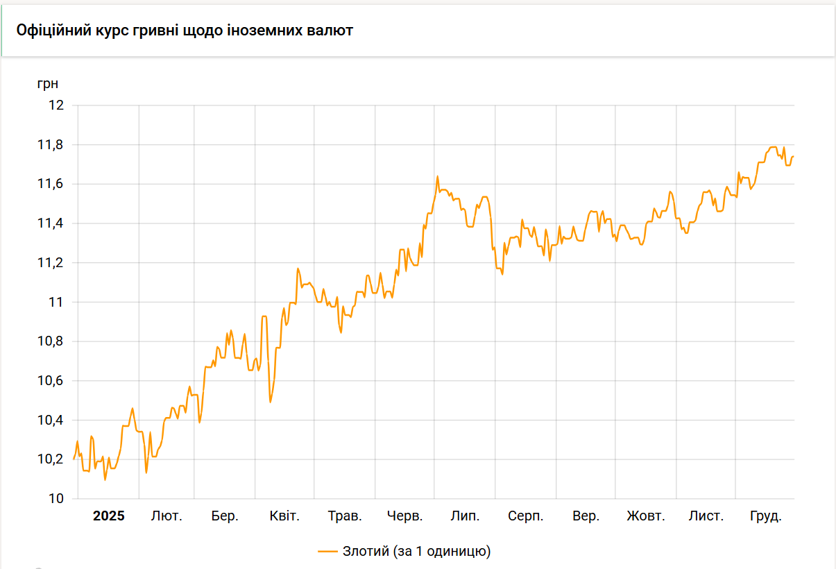 Нагадаємо, що офіційний курс злотого на 29 грудня було підвищено порівняно з попереднім робочим днем на 4 копійки - до 11,74 гривні.