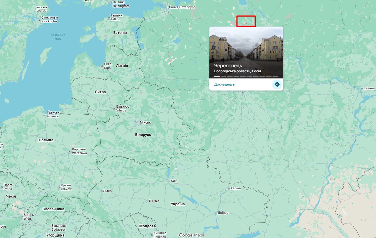 Фото: де розташоване місто Череповець в РФ (скриншот Google Maps)