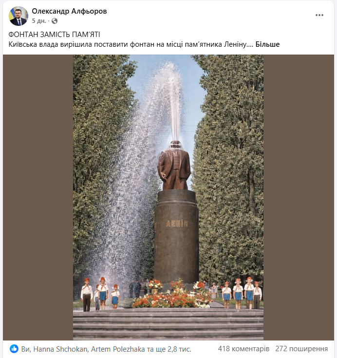 - Суть конфлікту: Кияни виступили проти встановлення фонтану на місці знесеного пам’ятника Леніну, вважаючи проєкт недоречним під час війни.
